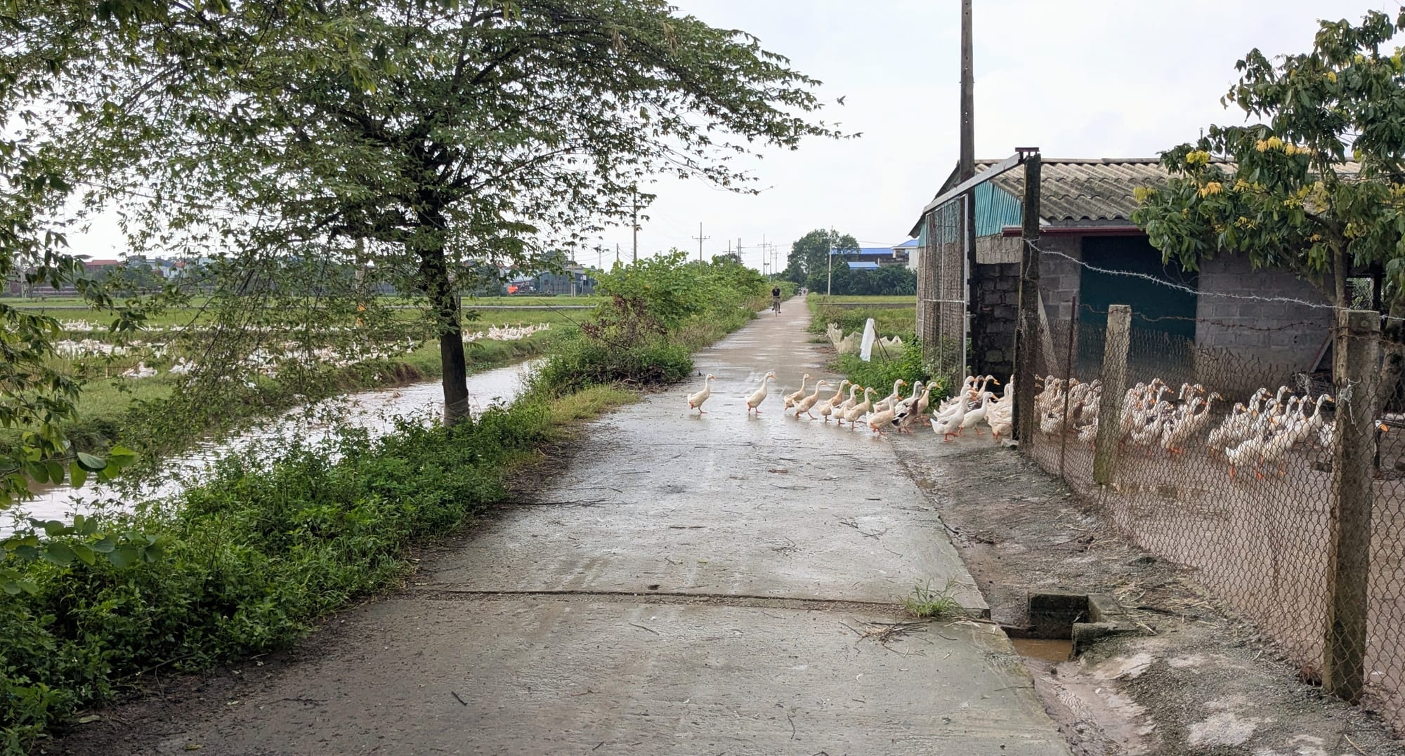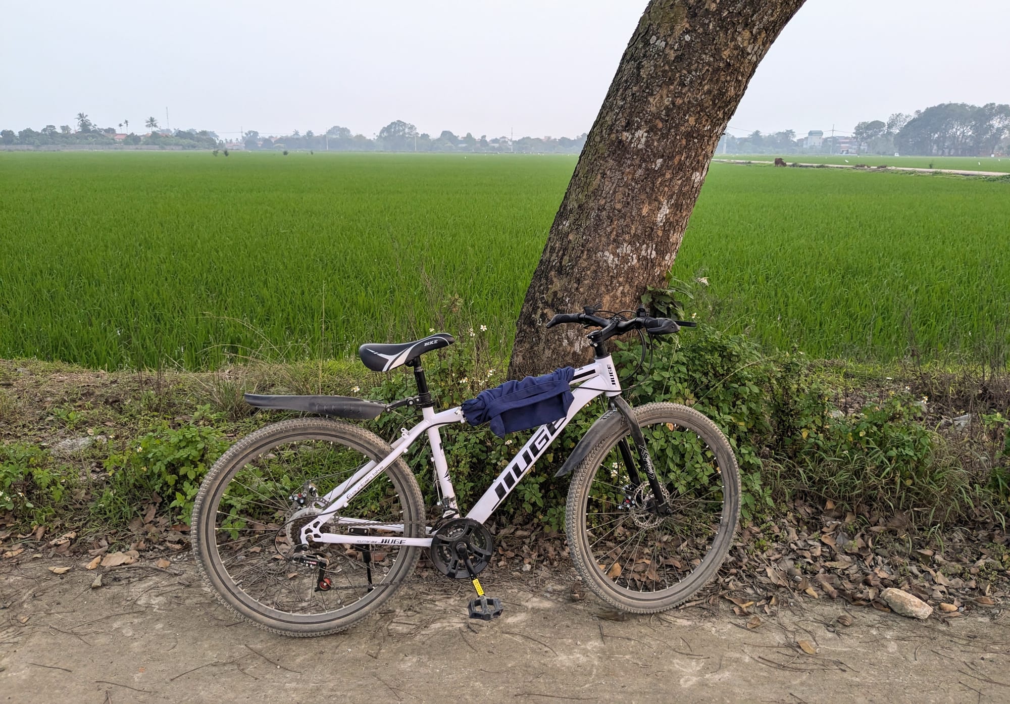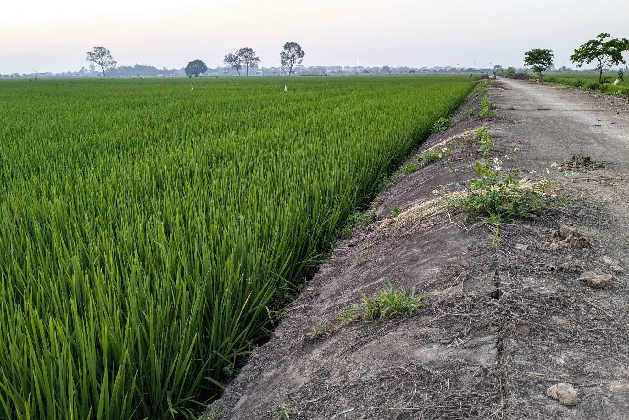 Most afternoons, when the school empties out, I take off on my bicycle to the narrow roads paved with white cement that criss-cross the fields. It is rush hour and the main roads are full of people returning home on motorbike, and big dump trucks hauling away construction rubble. But the fields have little traffic.