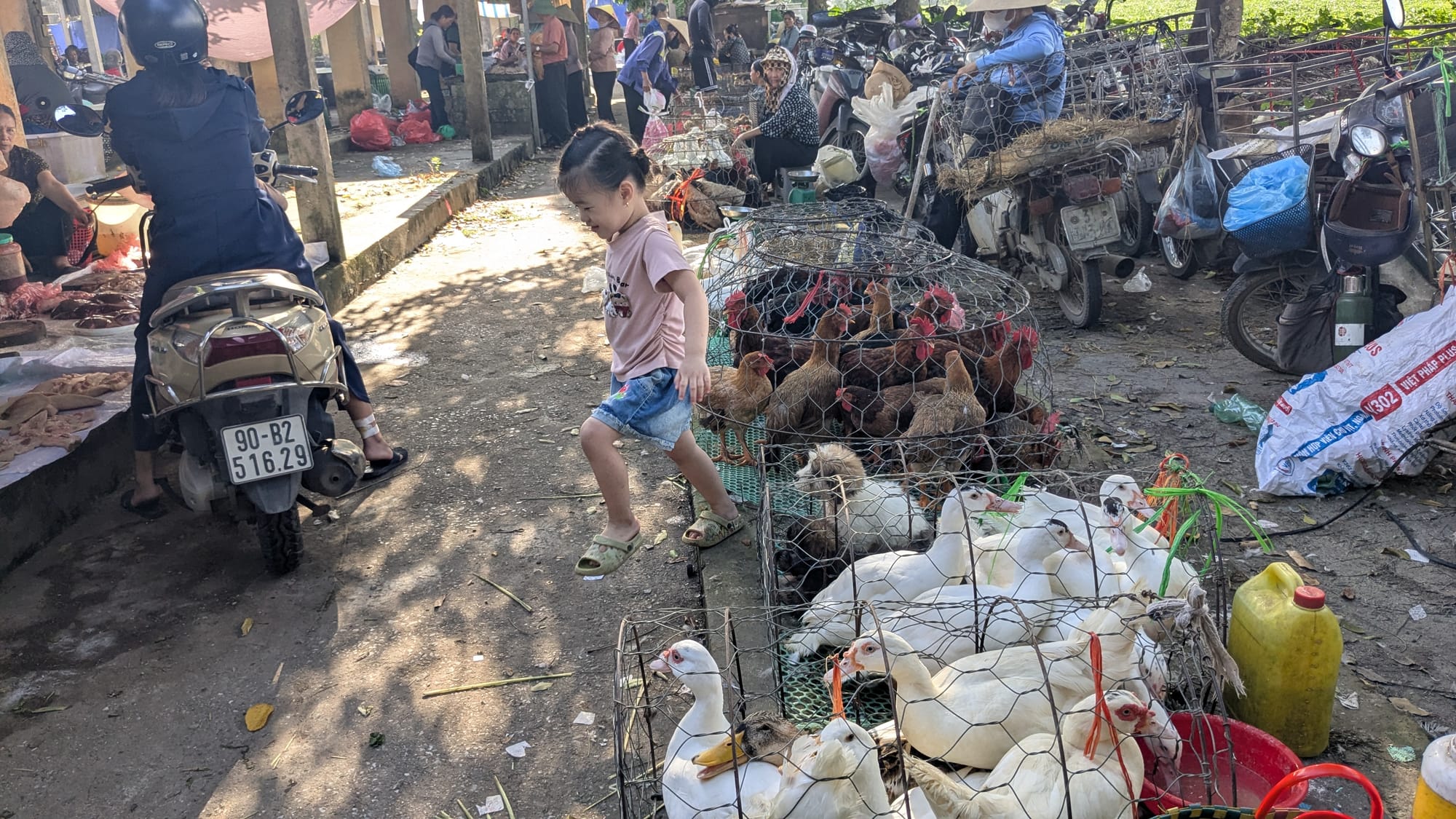 It's Bà loading her bicycle's basket with a bag of vegetables to go sell in the market. She is motioning to me to stop. I greet her as I usually do, and she runs back through her front gate leaving me confused as to whether I should follow her.