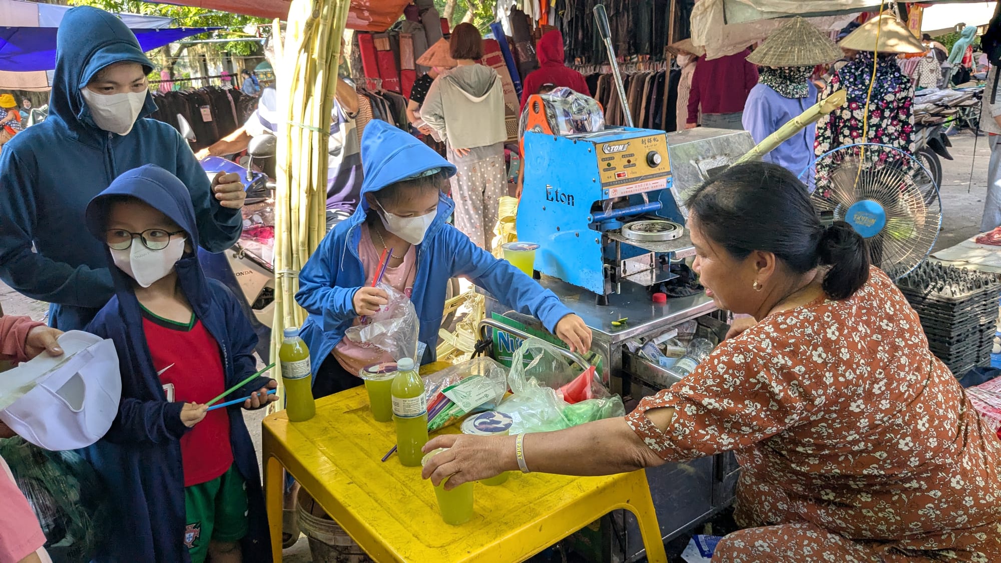 Just then, the eldest vendor shuffles over and shouts at the auntie who has just sold me corn. She suddenly hands me some change back, and her body language says please forgive my mistake. I accept it with two hands and shrug and smile like I don't understand.