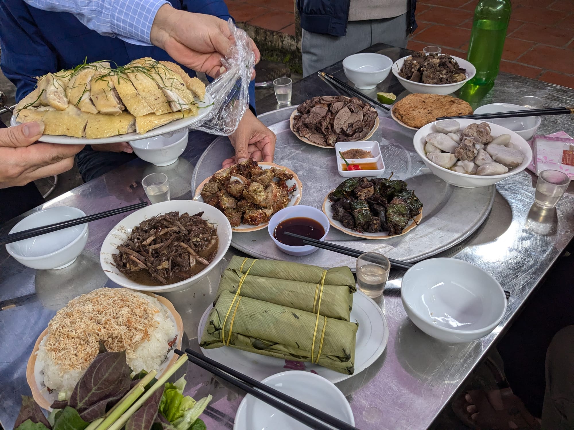 One weekday I am invited to Chú's house for lunch. I arrive to find the courtyard of a traditional one-story Vietnamese home covered in tents and half the village there.
