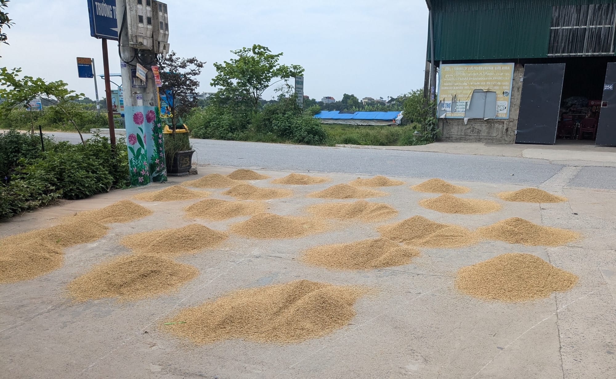 The rice is spread thin and often covers the entire street. While some people try to avoid walking or cycling on it if there is enough room, in most places it is common to walk or even drive vehicles over it. Slowly, so as not to kick it all over the place.