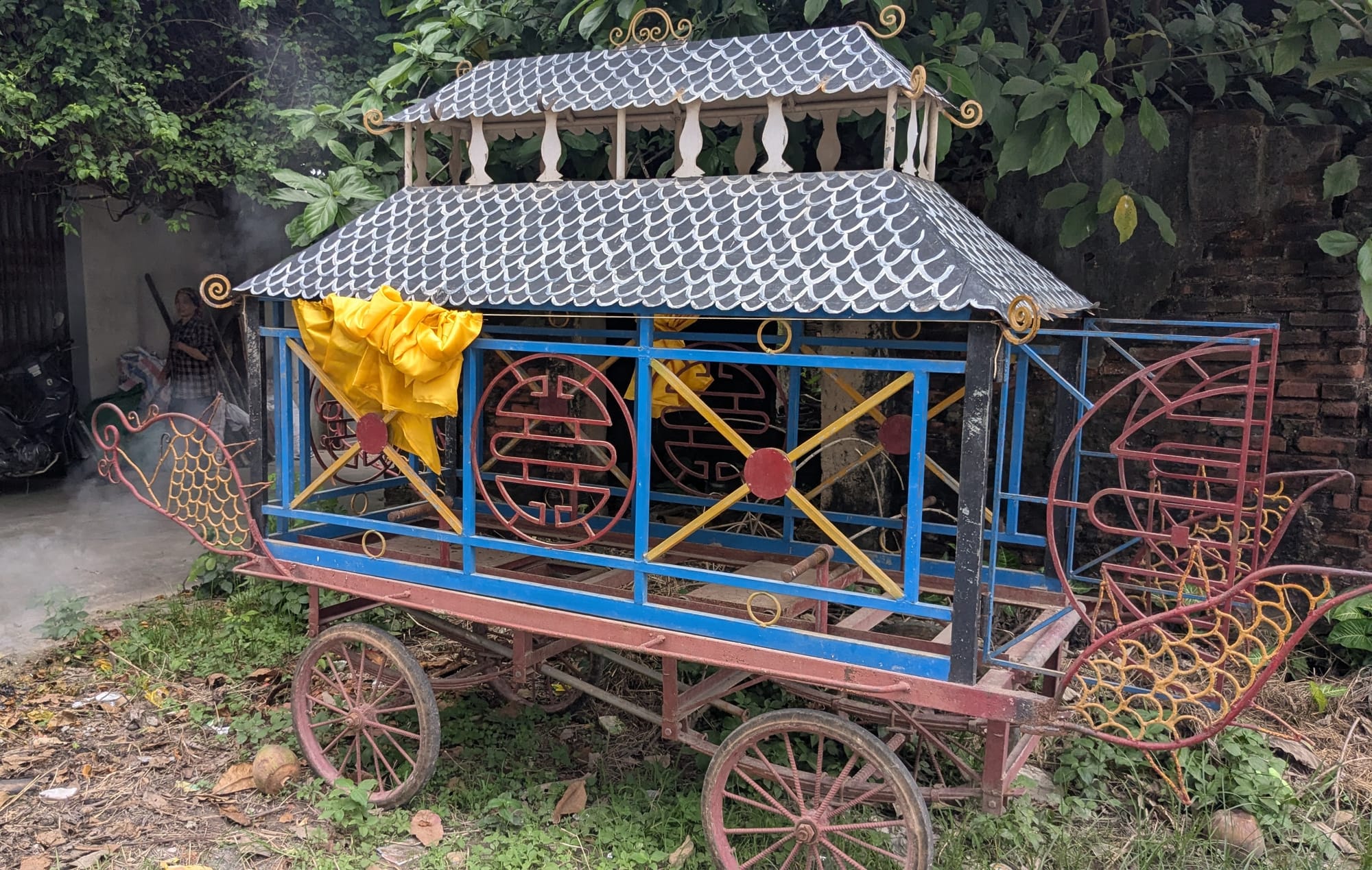 A hearse pulled by two horses quietly departed from 73 Ngã Tư Sở to the cemetery, followed by 300 people walking or pushing bicycles. The young wife's cries were heartbreaking. A woman next to her held her tiny daughter, less than a year old. A cap was put on Lương's head made of white cloth, and she groped at it like she was trying to pull it off.