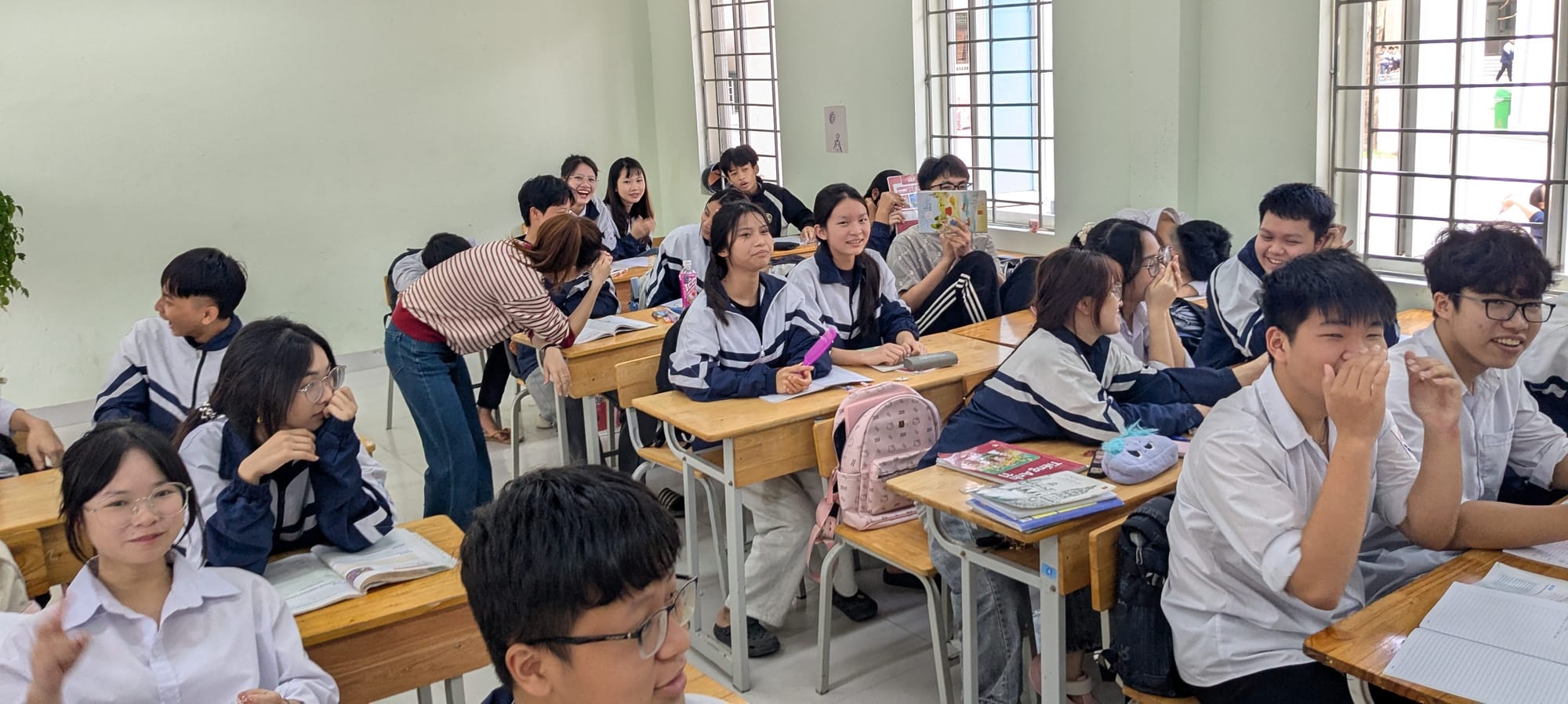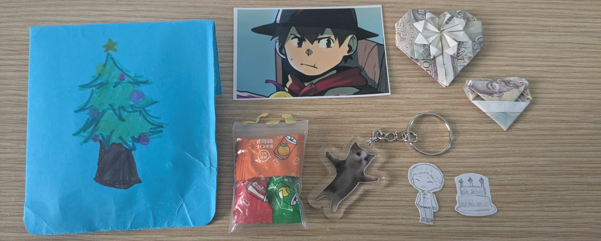 In between classes, a 10th-grade girl beckons to me while I am waiting in the teacher's room. She bows and hands me a blue envelope with two hands. Before I can ask her what class she is in or her name, she is running away. When I opened it later, I was so moved; the assortment of candies, One Piece stickers, a keychain, and origami hearts made out of 1,000Đ bills is clearly just everything she could scrounge together to make a birthday gift.