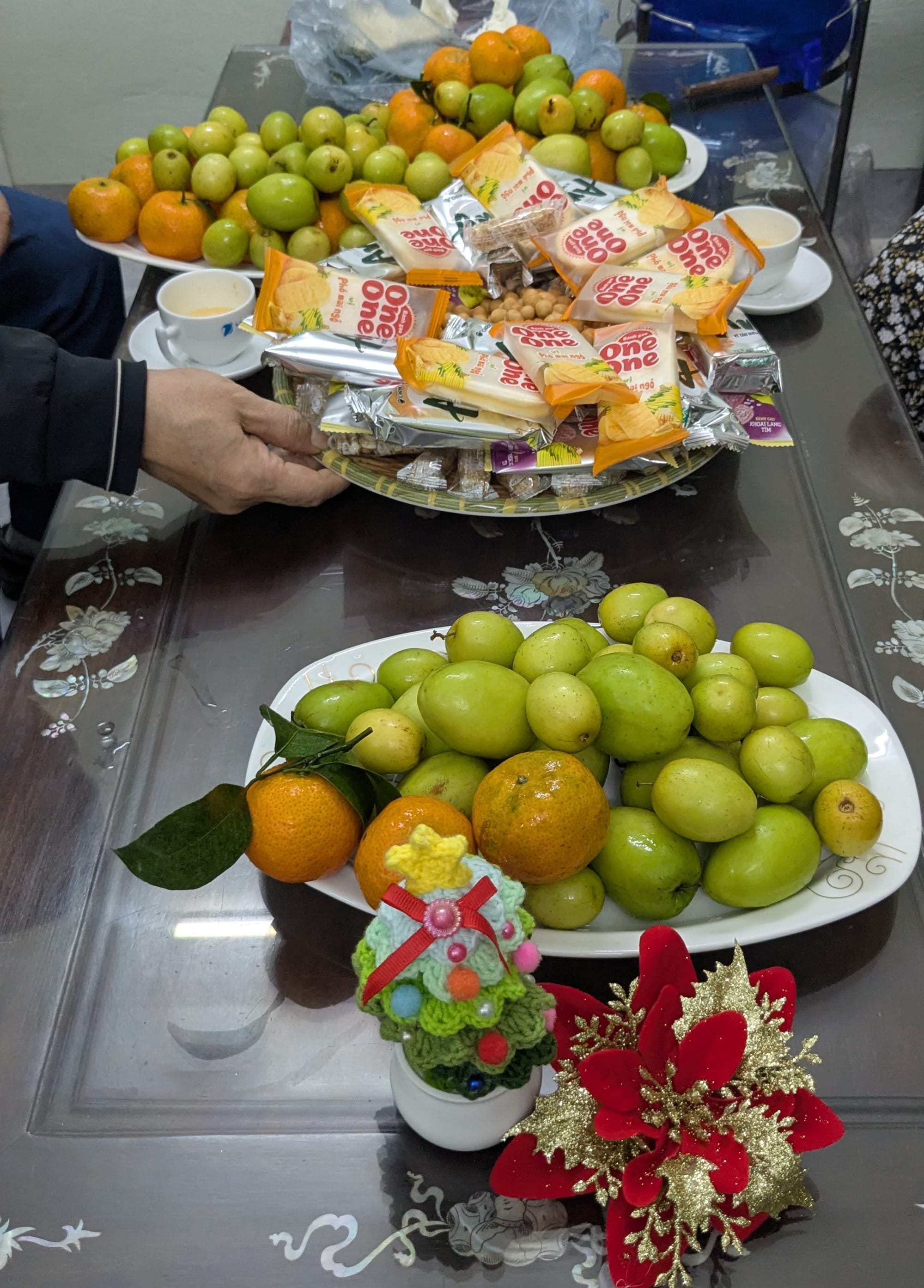 In the hall, Chị H smiles at me and says something like "You got a gift, didn't you?" The day before, I got a gift basket of cured meats and cheese (sourced from Hà Nội) sent by my parents, and it became part of the morning's gossip. She is pleased to learn it's from my parents for Christmas.
