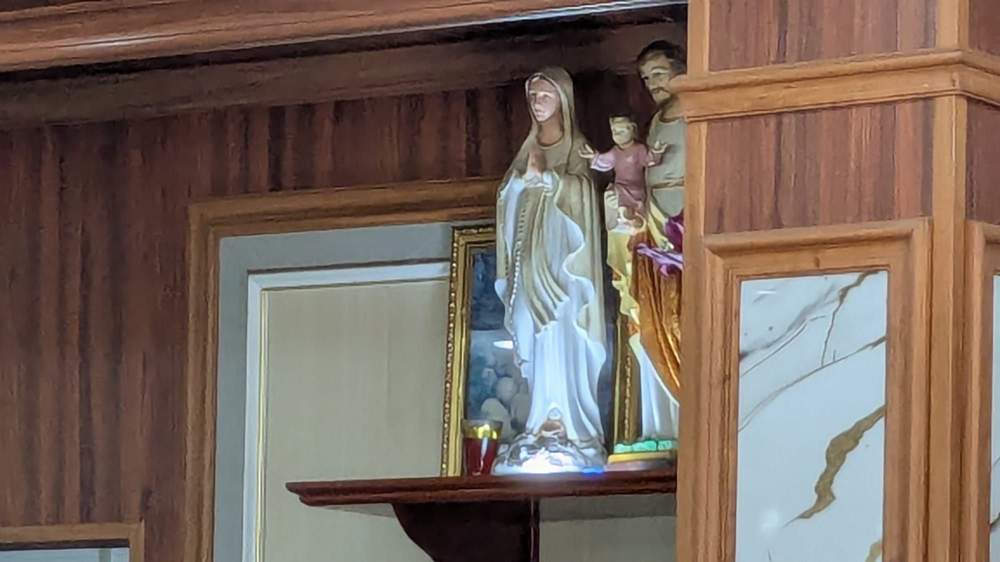 I have discovered that there are several Catholic cathedrals at the very limits of my range for an evening bicycle, so after classes I set out to find one so that I can see some Christmas decorations. It takes an hour and takes me into areas where people are not used to seeing a foreigner - lots of shocked staring - but I am rewarded with a very well-decorated church. An interesting collision of sacred and commercial symbols of Christmas.