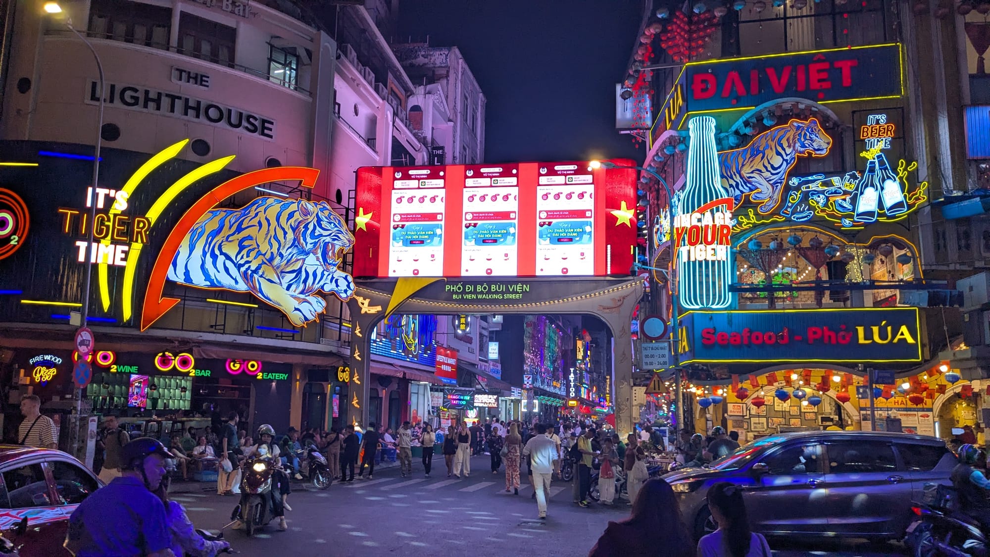 As we walk down a crowded street packed with food stalls, she points out how many are not "Southern" and not even Vietnamese: Taiwan, Singapore, Korea, India and more.