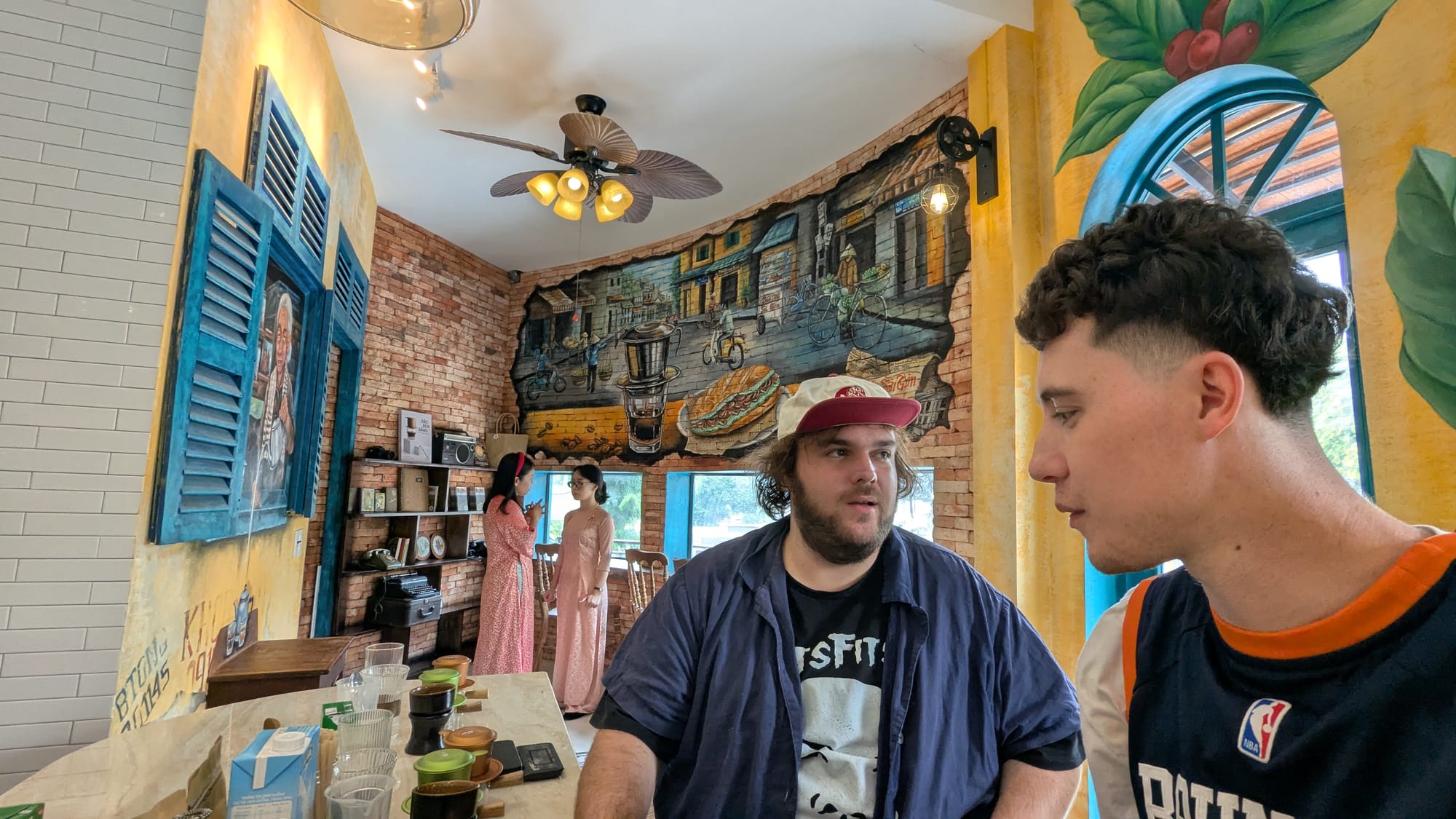 In the afternoon, the Peace Corps treated us to a "cultural experience". We went to a coffee shop to learn how to make several types of Vietnamese coffee drinks. Egg coffee, salt coffee, and coconut coffee, all made with the base of the cà phê phin, a simple, reusable filter.