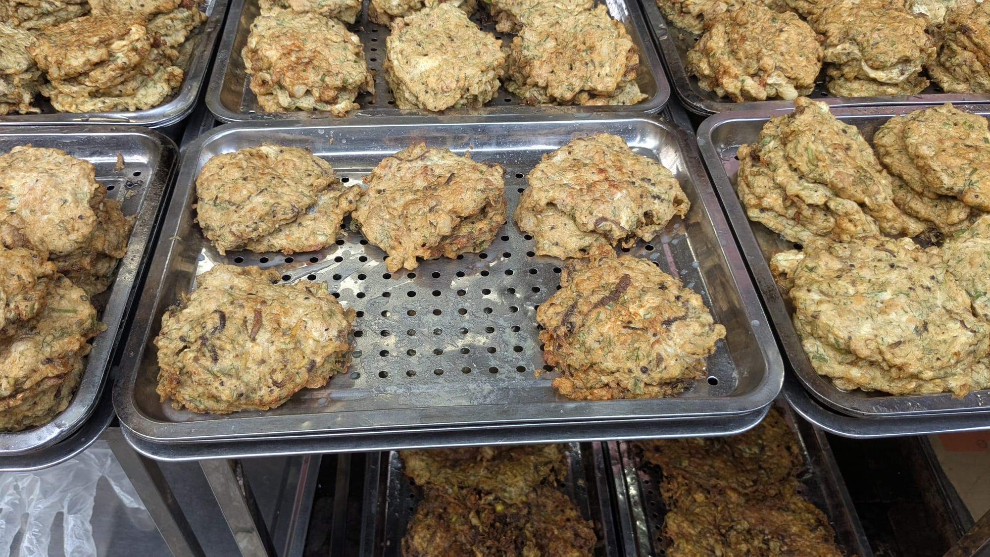 Then, although I am stuffed, I can't resist the rare opportunity to try a very seasonal delicacy: chả rươi. Rươi are a type of worm, a sand worm, which have a population boom towards the end of the year in the rice fields. This is probably too late in the season for fresh rươi but I forgot to try them my first year too. They are cleaned and put into an egg fritata with dill and orange zest. The flavors are subtle and meant to make the worms taste as palatable as possible. They certainly are very chewy.