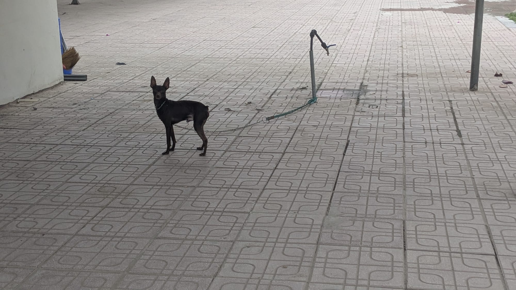 I let myself in the unlocked gate to the deserted school that feels strangely like home now. The little guard dog chained up wags his scrawny little butt at me. He is a noisy little alarm who barks at anyone who so much as walks past the front of the school. But I have been here long enough now that without really being trained to it, I am on his "friendly" list and he doesn't bark at me.
