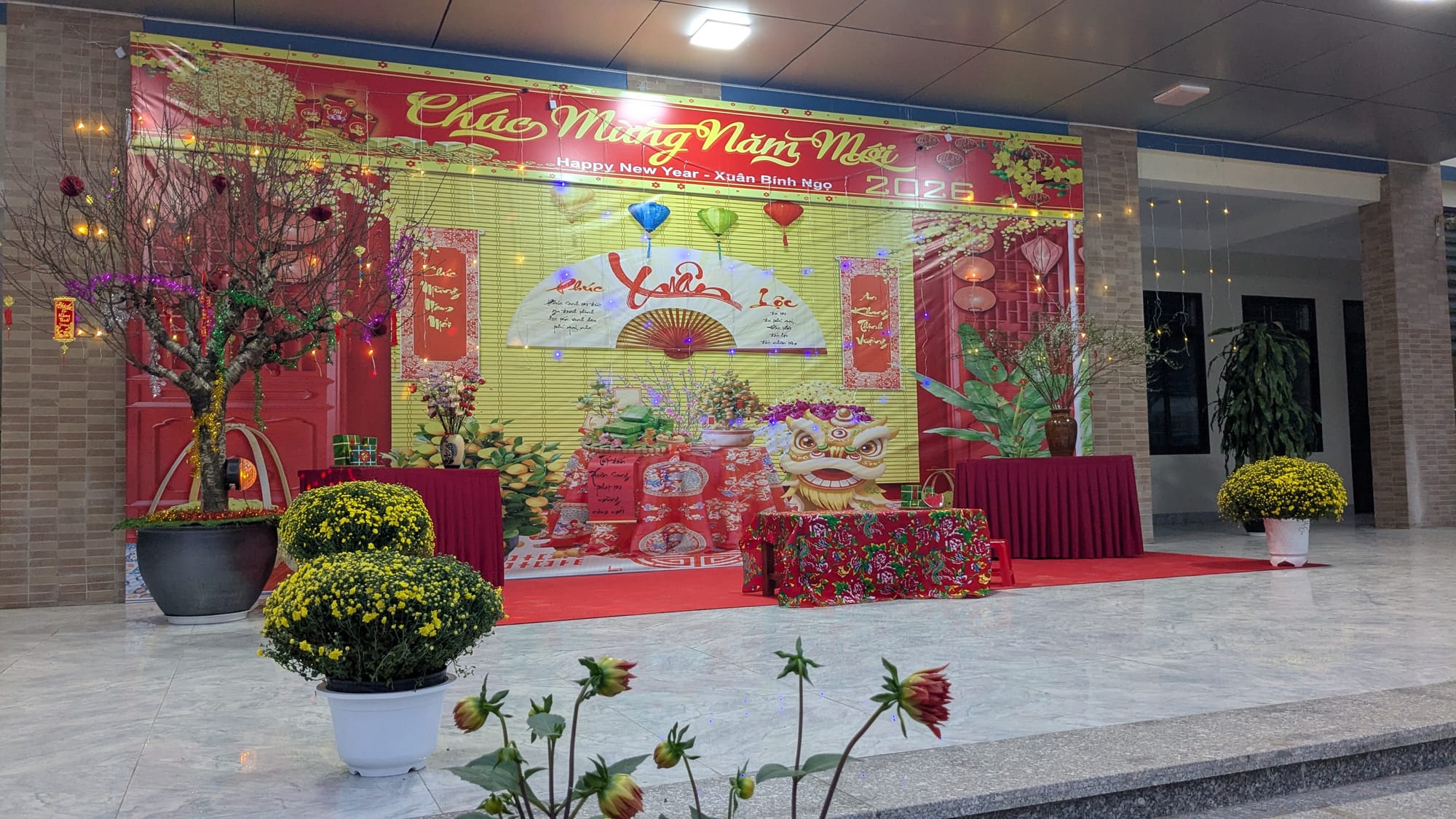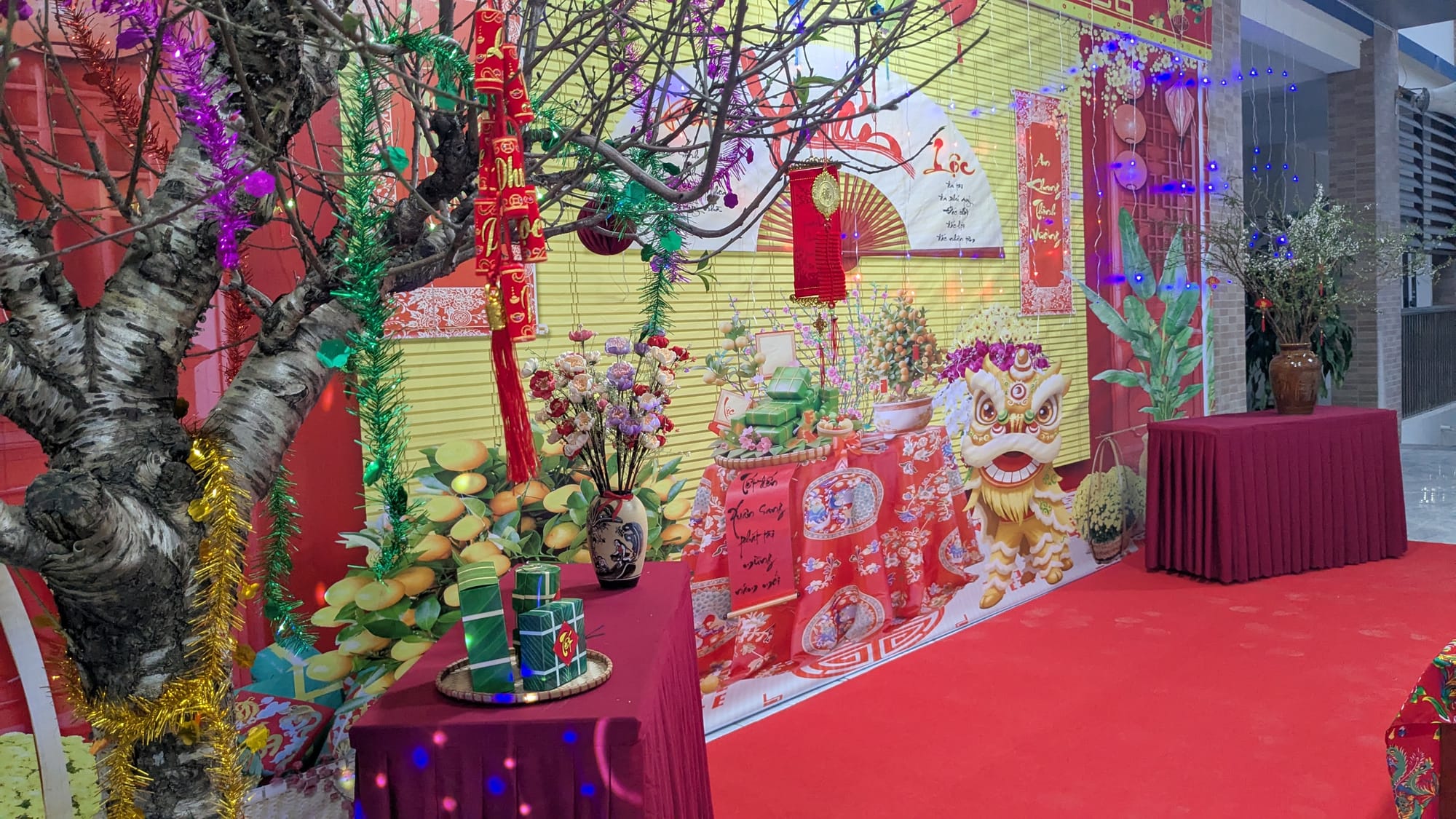 Today there's a competition for "good teachers" in our district at our school. As I head for class, the courtyard fills up with cars and there are a bunch of teachers loitering in front of the meeting room, taking pictures with the brand new Tết display. Some of them are surprised to me see, but I don't have time to fully introduce myself on the way to class. I greet them in Vietnamese just for the satisfaction of giving them a second surprise and go to class.