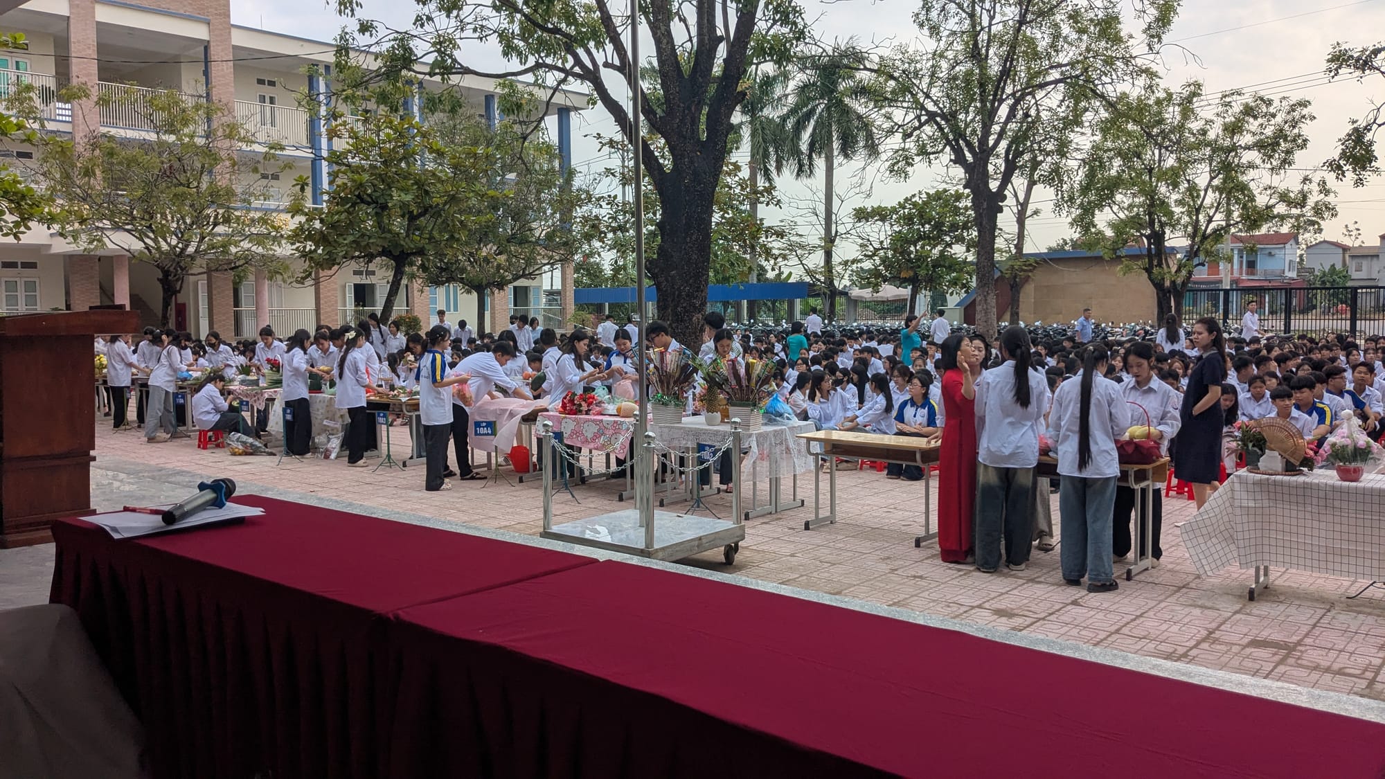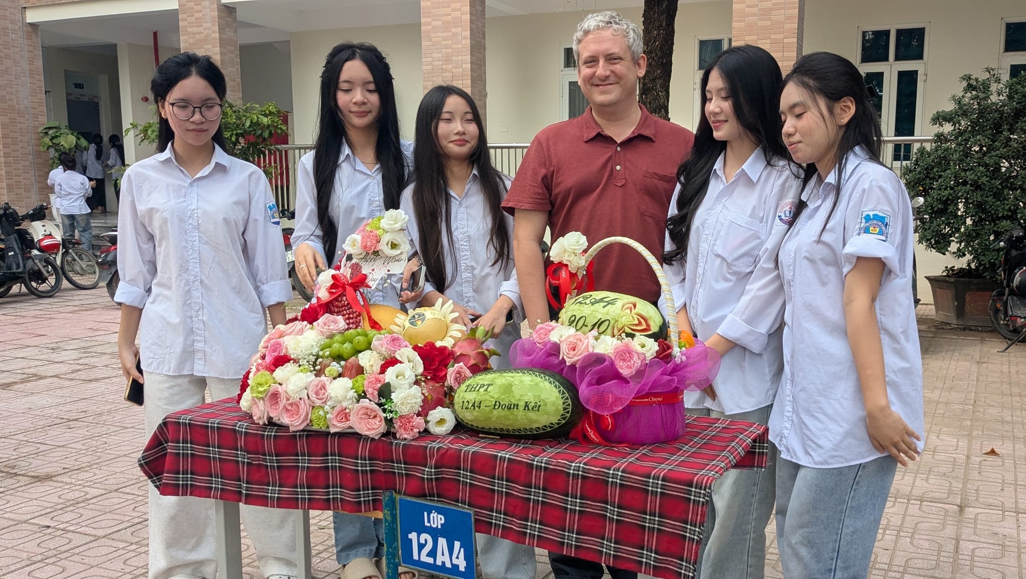 Some of the students from one class started shouting at me, "Teach-uh! Cuh-ris!" They pointed at their display and gave me a thumbs up. As it happens, I had an English lesson recently where "judge" was a vocabulary word, so I told them: "Thầy không phải là giám khảo!" (I am not a judge!) They laughed.