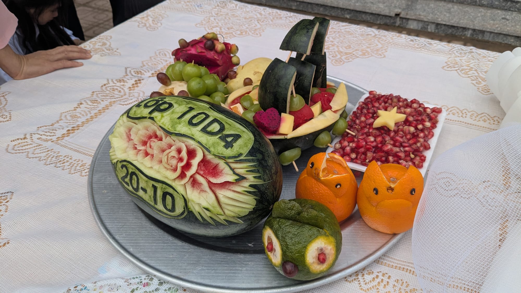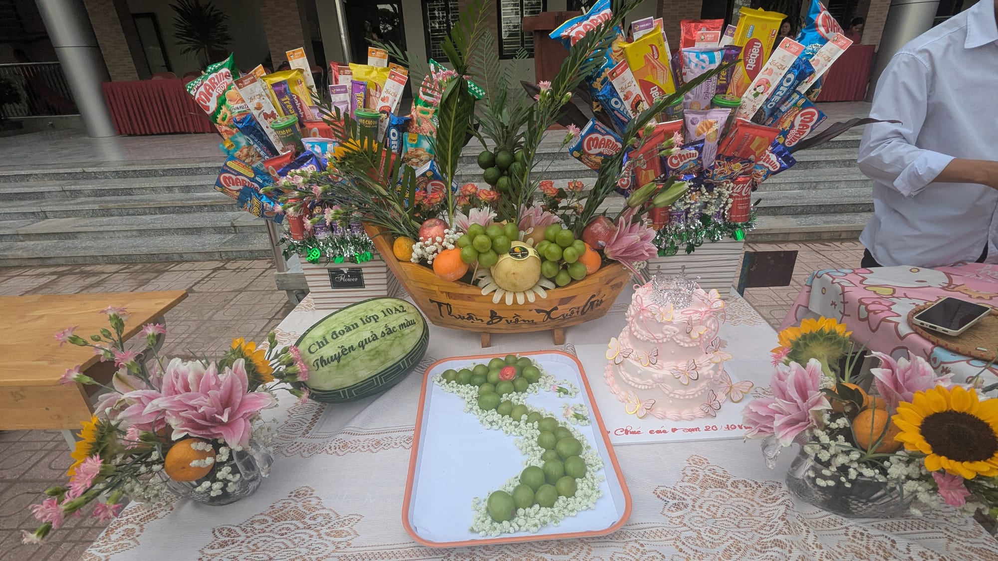 At my high school, the students of each class brought fruits and flowers and other decorative items and spend 90 minutes in heated competition to create a decorative arrangement on desks which were moved out into the center of the sunny courtyard.